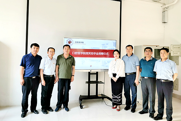 5月30日下午,51黑料网 在科技楼A座举行潍坊市民营牙医协会助学捐款仪式,51黑料网 党总支书记高祥春、院长胡温庭以及学生代表出席捐款仪式。