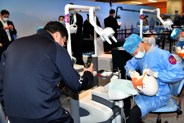 本次竞赛由空军军医大学承办,上海交通大学、武汉大学、中山大学、四川大学、西安交通大学等26所院校共同参与,设临床思辩、全瓷冠制备、智齿拔除缝合、龈下刮治、橡皮障及二类洞预备、临床科研设计等6个项目,利用口腔教学最新的虚拟仿真设备,通过个人赛和团体赛2种模式全面考核参赛学生的临床综合诊疗能力和科研水平。