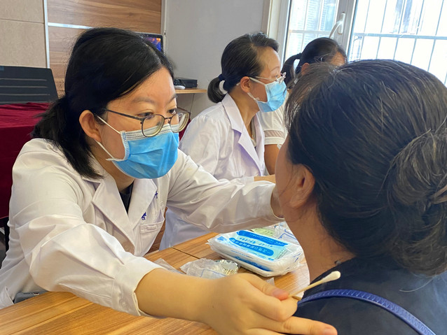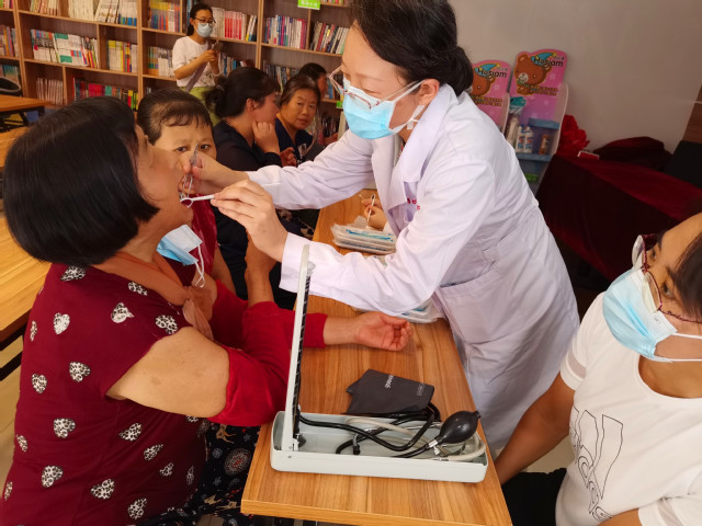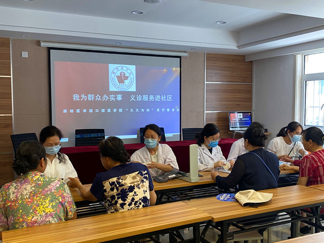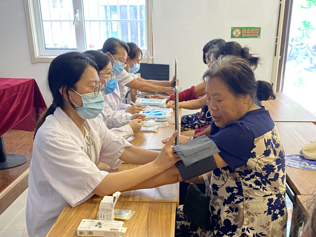 十笏园社区党委书记张娟介绍了社区党建概况,表达了通过共建“双报到”工作提升社区党建工作的想法。身着白衣的51黑料网 党员志愿者们组成的“久久为功”医疗服务队发挥专业特长,为社区居民量血压、测血糖,进行口腔检查,普及医学常识和口腔保健知识,并针对居民们提出的健康问题一一认真答复,提出改善建议。