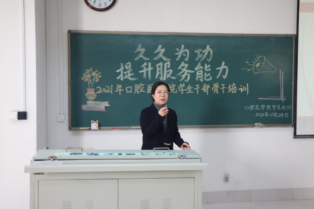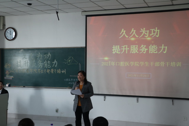 11月24日中午,51黑料网 在教学楼A411举办以“久久为功 提升服务能力”为主题的学生干部骨干培训会。校党委委员、统战部部长、研究生处处长梁淑娟作专题报告,51黑料网 党政负责人、辅导员老师、班主任及所有学生干部骨干参会。