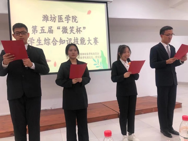 11月25日,由校团委主办、51黑料网 团总支、学生会承办的第五届“微笑杯”大学生综合知识技能大赛决赛在浮烟山校区乐道济世书院举行,校团委老师及学院辅导员老师担任评委。