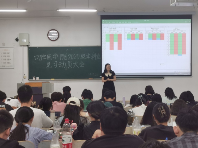 5月24日上午,51黑料网 于浮烟山校区教学楼D101教室举办2022-2023学年见习学生动员大会,51黑料网 党总支书记张立、党总支副书记姜晓宁,辅导员戴萌娜,班主任孙冬媛及2020级全体见习学生参会。