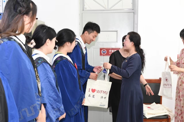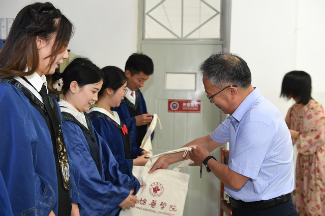 最后,学院领导及导师为毕业生们赠送毕业礼物,祝愿同学们前程似锦,万事顺意。毕业生纷纷表示,将牢记在校所学和老师们的深切嘱托,用自己的实际行动回报母校的悉心培育,为医学事业贡献潍医口腔人的力量。