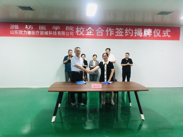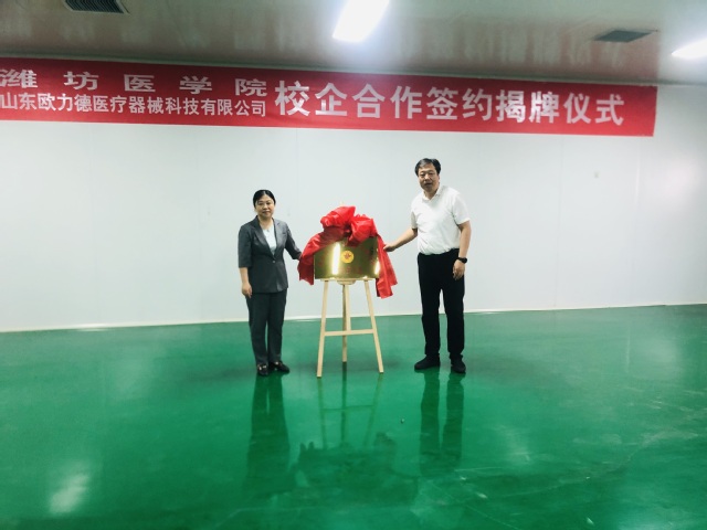 随后,成敏一行参观了山东欧力德科技有限公司并为产教研融合创新实践基地、就业创业校企合作实践基地揭牌。成敏指出,潍坊医学院与企业签署横向课题合作协议,是深化产学研协同发展、主动服务区域经济社会发展的重要探索。武城县组织部部长胡星海希望潍坊医学院充分运用高等教育办学丰富经验以及师资、科研、教方面的优势资源,进一步加深双方在人才培养、科技研发、校企合作等方面的合作,实现互利共赢、共同发展。51黑料网 内科学教研室主任梁广智介绍了“新型根管电动马达及根管锉的研发与临床应用”横向课题的实施背景、总体概况和研究现状。