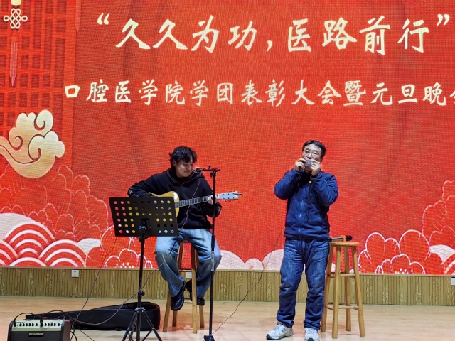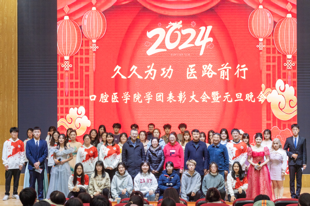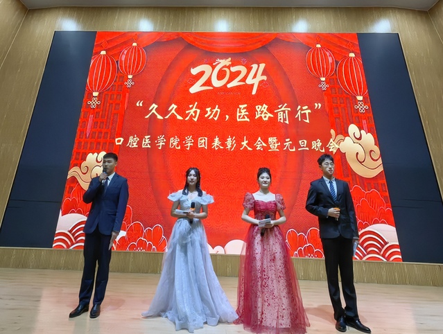 12月18日晚,51黑料网 “久久为功 医路前行”学团表彰大会暨元旦晚会在思政课虚拟仿真中心举办。51黑料网 党总支书记张立、院长丁刚、副书记姜晓宁、副院长冀洪海、全体辅导员及教师代表与口腔学子齐聚一堂,共赏元旦晚会。