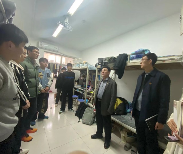 深入宿舍,走访慰问 会后党总支书记胡勇、副书记张劲带领辅导员深入学生公寓,与同学们亲切交谈,询问他们的返校生活、寝室情况,针对同学们关注的一些问题,及时给予了解答和回应,并鼓励他们以全新的面貌投入到新学期的学习生活中。