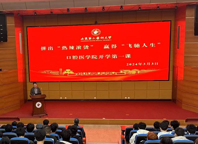 精心组织,深化教育 3月3日下午,学院在行政楼一楼报告厅组织全体在校生开展以“拼出‘热辣滚烫’,赢得‘飞驰人生’”为主题的开学第一课,党总支书记胡勇、院长丁刚、副书记张劲、副院长冀洪海及全体辅导员出席会议。胡勇叮嘱同学们要遵守学校和学院的规章制度,切实克服松懈麻痹思想,增强安全意识,迅速进入开学状态,严防开学期间各类安全事故发生;丁刚结合学院考研率、就业率和执业医师资格通过率告诫同学们要珍惜时间,加强专业学习;张劲以“如果没有特别幸运,那就请特别努力”、“人生只活一次,总要为自己赢一次”等励志台词,激励同学们坚定理想信念,共同迎接热辣滚烫的新起点;冀洪海就学生们关心的实习和考研的问题给予解答。最后辅导员围绕安全教育、学业规划、心理健康、社会实践等方面提醒同学们新学期要把握当下、学有所成。