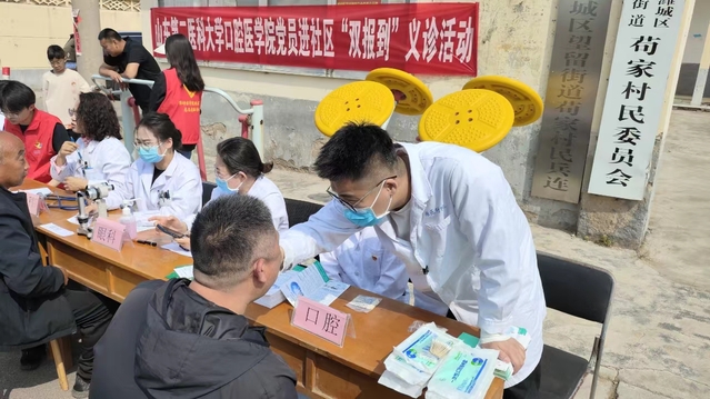 义诊现场,教师党员们为老人们进行了详细的口腔健康检查,认真、耐心地解答各种口腔健康相关问题,并提供诊疗建议。学生党员们结合自身专业优势,为老人们进行口腔宣传科普,引导大家树立注重口腔卫生的健康观念。此外,现场还有眼科专家给大家认真做眼部检查,老年病科专家为大家认真讲解各种老年人常见疾病及注意事项,内科专家为大家科普胃部疾病防治知识,外科专家为大家进行体格检查,血管介入科专家为大家开展血管病的科普与建议等。