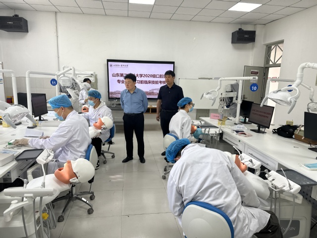 4月19日,51黑料网 对2020级口腔医学专业本科生进行了实习前技能考核(客观结构化临床技能考试OSCE)。考核在致远楼A座的口腔医学专业实验室进行。51黑料网 党政领导胡勇、丁刚、张劲和冀洪海到现场督导。