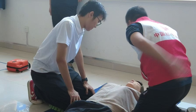 走进当地红十字会基地,师生们在此全方位体验了交通安全、消防、逃生等主题教育内容:通过模拟驾驶感受危险路况应急处理,在模拟灭火装置前学习灭火器规范使用,借助VR技术沉浸式体验火灾逃生场景。应急救护实操环节,卫生院医护人员现场示范心肺复苏、止血包扎等关键技能,手把手指导同学们亲身实践,确保每个人都熟练掌握操作要领。丰富的互动体验与专业教学,让师生们深刻认识到应急救护能力在基层医疗工作中的重要性,也让红十字会基地的科普教育功能得到充分展现。此次参观不仅让大家直观了解了红十字精神与急救知识,更将“救死扶伤”的理念与口腔医学专业结合,为今后在诊疗中融入应急关怀打下基础。